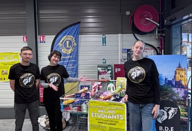 mise en place d’un point d’aide alimentaire en 2025, réalisé en partenariat avec le Lions Club Pasteur, permettant la distribution de plus de 150 kg de produits essentiels aux étudiants.
