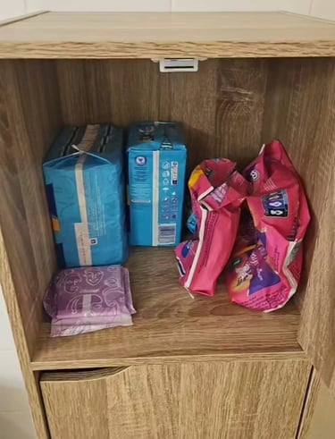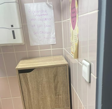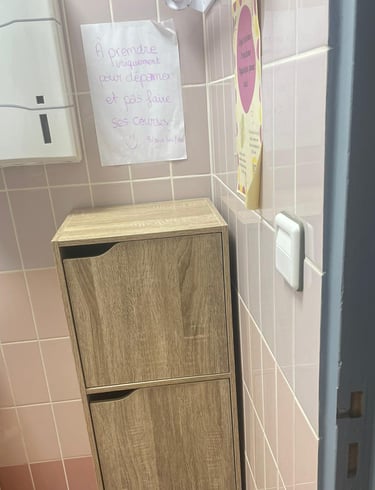 Nous avons déjà installé un meuble dédié dans chaque établissement partenaire. Si ce n’est pas encore le cas dans votre structure, merci de nous en informer : nous pouvons encore intervenir. Nous disposons actuellement d’un stock important de serviettes hygiéniques, résultat de collectes particulièrement fructueuses.